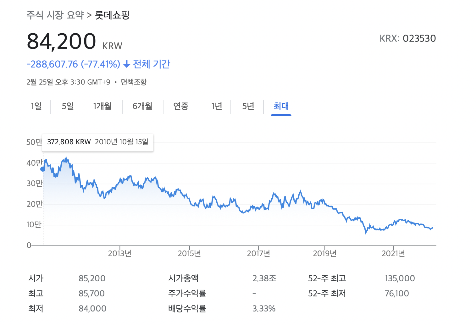 - 롯데쇼핑 주가도 좋은날이 올까요? 팬데민때 저점 찍고 유동성으로 크게 올라왔지만