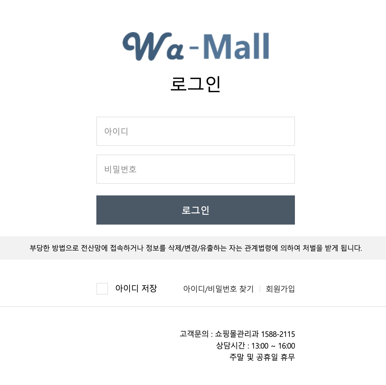 Wa-Mall 고객문의 쇼핑몰관리과 1588-2115