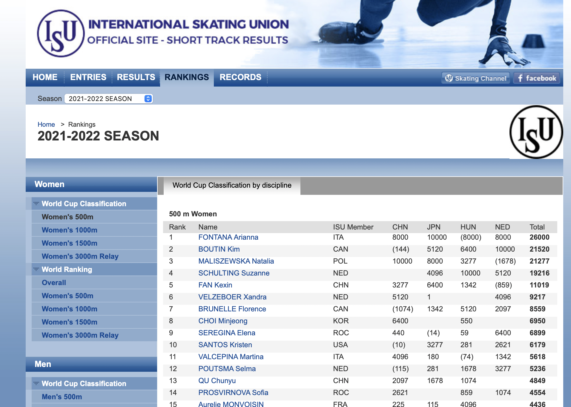 ISU 국제 스케이팅 연맹 에서 발표하고 있는 쇼트트랙 세계랭킹입니다. 우리나라 선수들이 잘하는건 아는데 세계에서도 당연히 1등이겠거니 생각을 해왔는데 실제로 보니 그렇지도 않은게 오히려 중국이나 헝가리가 더 좋은성적이네요. 하지만 이 랭킹이 뭐 올림픽에서 금메달을 보장하는건 아니기 때문에 우리 황대헌 선수가 500m에서도 좋은 성적 거두길 응원합니다.