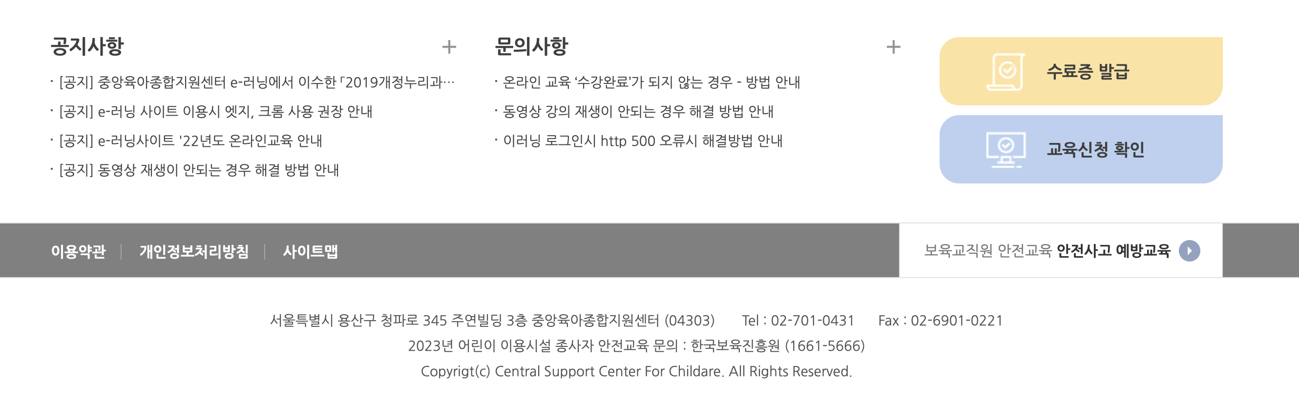 2023년 어린이 이용시설 종사자 안전교육 문의 : 한국보육진흥원 (1661-5666)