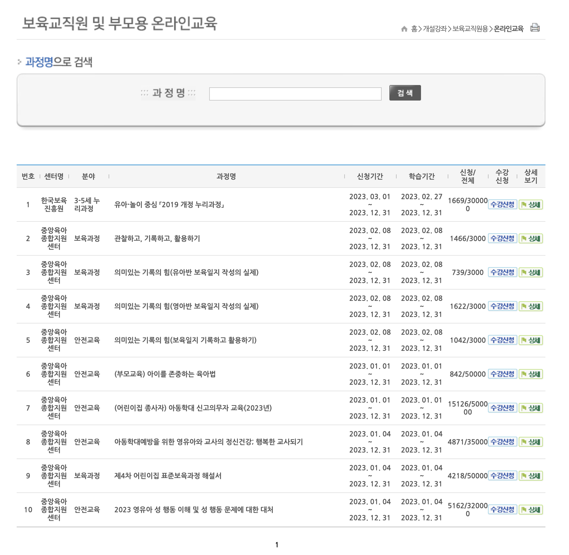 보육교직원 및 부모용 온라인교육