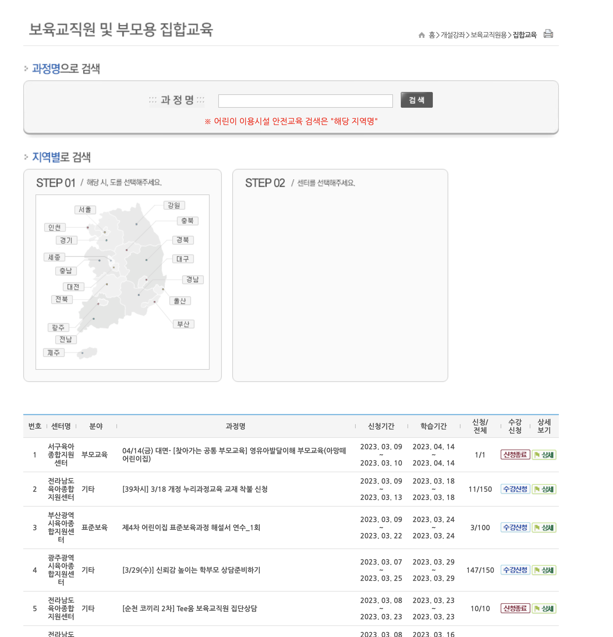 과정명, 지역별로 검색하세요.