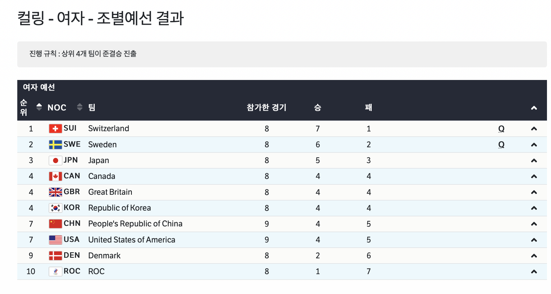 스웨덴은 2위로 이미 준결승에 올라가 있습니다.