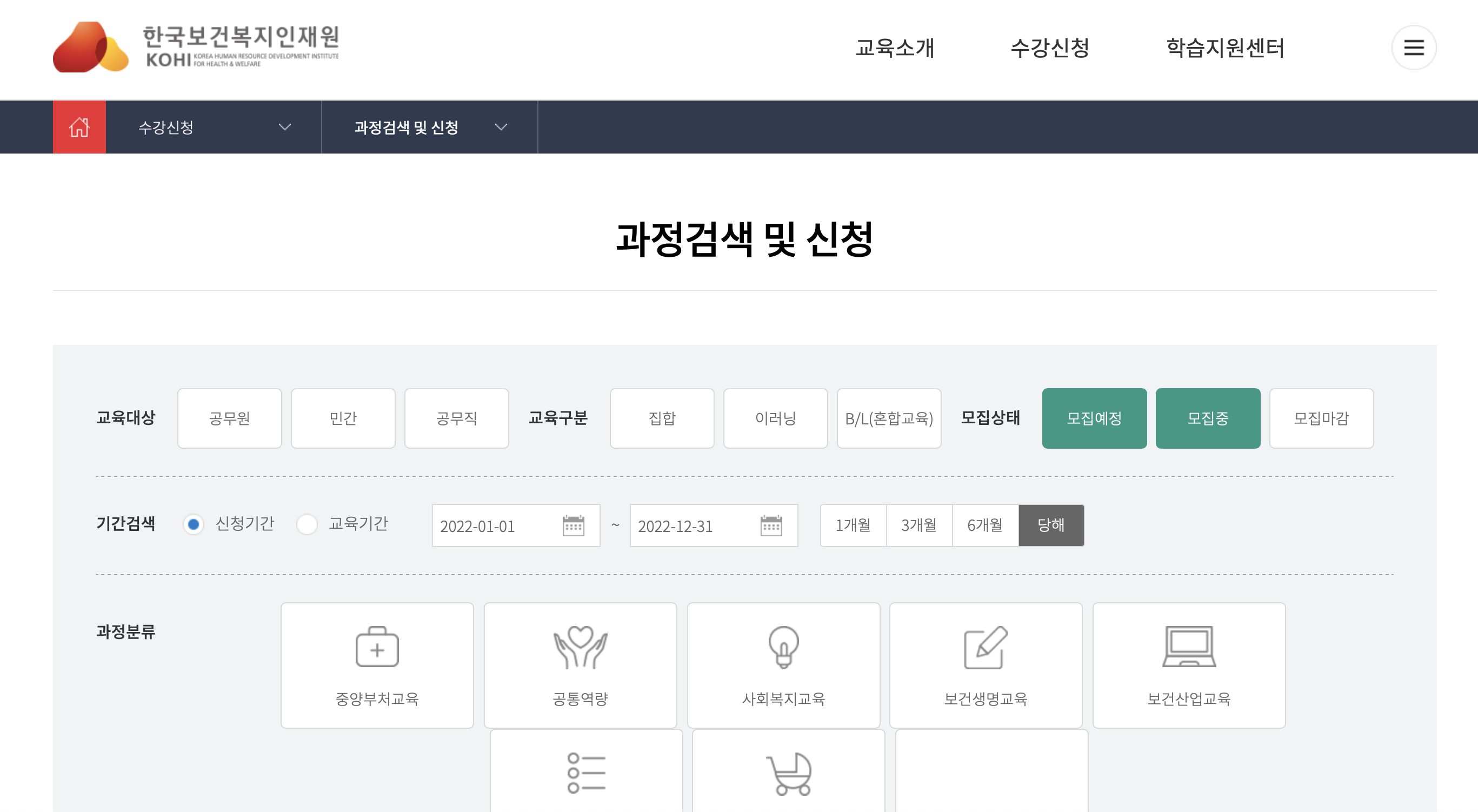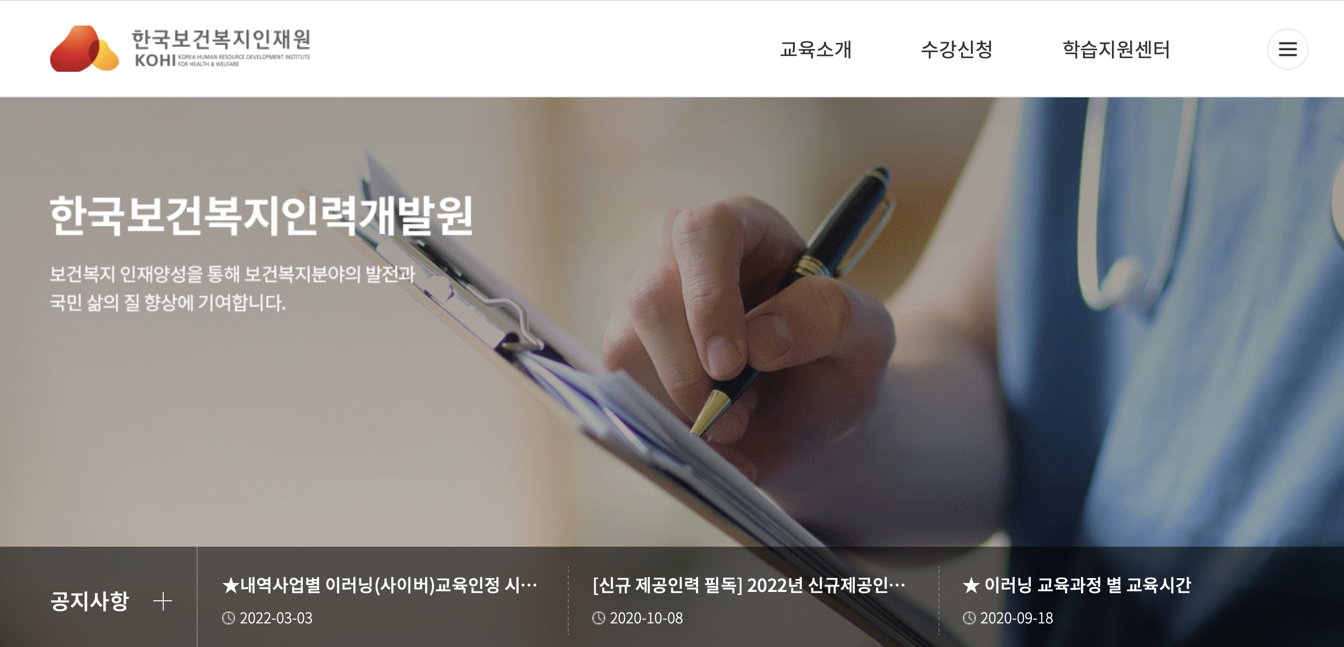 KOHI 보건복지배움인 - https://edu.kohi.or.kr/index.do