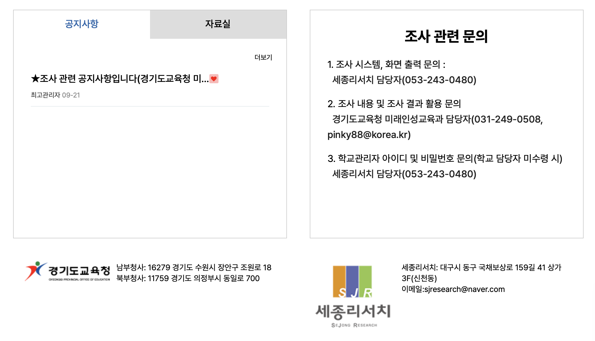 조사 시스템 화면 출력 & 학교관리자 아이디 및 비밀번호 문의