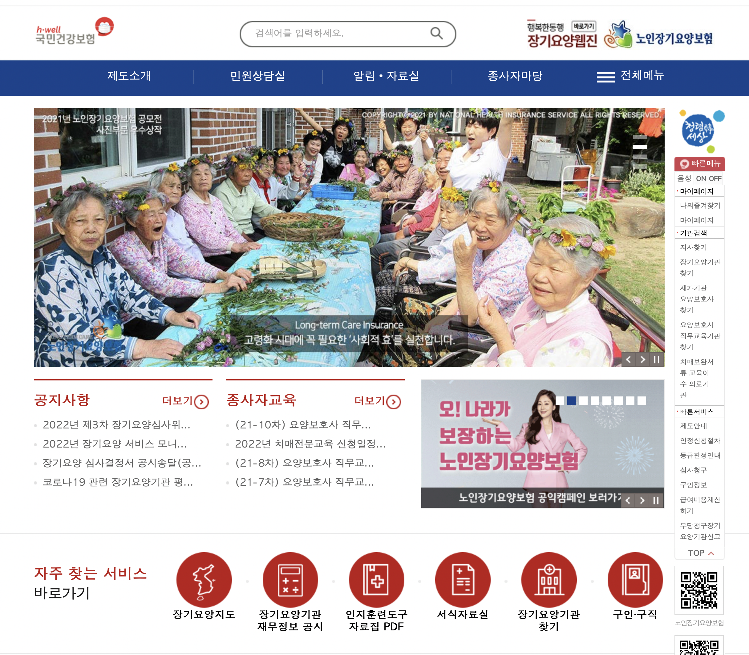 장기요양보험 - https://www.longtermcare.or.kr/npbs/indexr.jsp