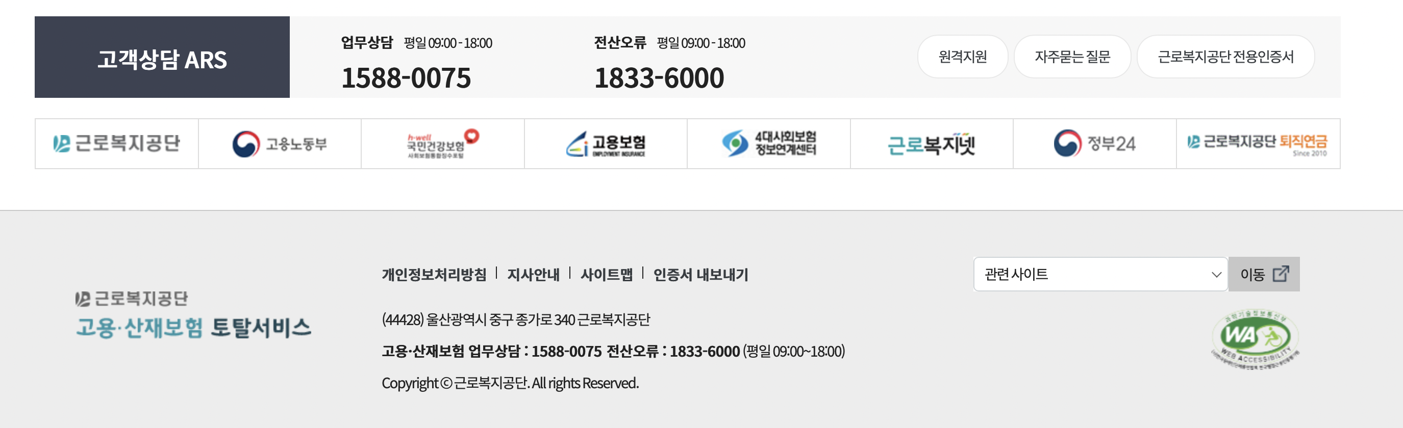 근로복지공단 고용 산재보험 토탈서비스 홈페이지 입니다.